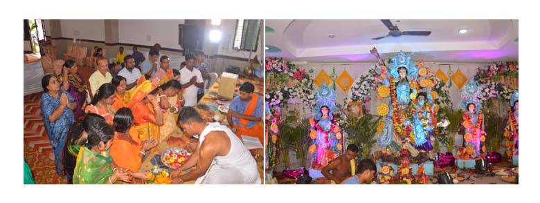 अमरावती/दि.29 – बंगाली समाज की सारबोजोनिन दुर्गा पूजा कमिटी द्बारा इस वर्ष भी राजापेठ स्थित दीपार्चन सभागार में भव्य-दिव्य संपूर्ण परिवार के साथ दुर्गा देवी की स्थापना कर विधिविधान से मंत्रोच्चार सहित पूजन आरंभ किया गया. दुर्गा पूजा उत्सव की इस वर्ष की कार्यकारिणी में अभिजीत सेन को अध्यक्ष, डॉ. अरविंद सिन्हा को संयोजक और जयोति बैनर्जी को मानद संयोजक मनोनीत किया गया. अत्यंत चित्ताकर्षक दुर्गा पूजा मूर्ति बनाई गई है. जिसकी विधिवत स्थापना पुरोहितों के मत्रोच्चार के साथ शुभ बेला में की गई.