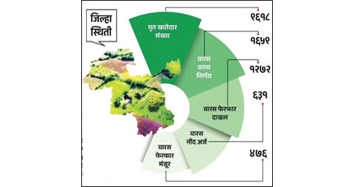 राज्य सरकार के 100 दिवसीय कृति कार्यक्रम अंतर्गत जीवित 7/12 अभियान चलाया जा रहा है. इस मुहिम पर अमल करने हेतु ग्राम राजस्व अधिकारियों के जरिए गांवनिहाय सर्वे किया गया. जिसके तहत 7/12 दस्तावेजों पर नाम दर्ज रहनेवाले 9618 खातेदार मृत रहने की बात सामने आई. इन मृतकों के उत्तराधिकारियों को कृषि भूमि से संबंधित अधिकार मिले, इस हेतु जीवित 7/12 अभियान जिले में चलाया जा रहा है, ऐसी जानकारी उपजिलाधीश (राजस्व) विवेक जाधव द्वारा दी गई.