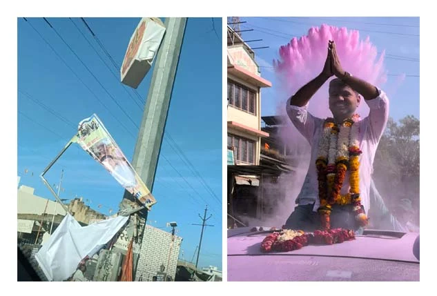 चांदुर रेलवे/दि.25 – नगर परिषद के हाल में संपन्न चुनाव पश्चात चांदुर रेलवे में बदले का राजकारण शुरू होने की भावना तीव्र बताई जा रही है. नवनिर्वाचित नगरसेवक हर्षल वाघ को जान से मारने की धमकी दी जाने की शिकायत पुलिस में की गई है. शिकायत में कहा गया कि वाघ के अभिनंदन के कई पोस्टर और बैनर अज्ञात तत्वो ने गत रात फाड दिए. अज्ञात युवकों की यह करतूत सीसीटीवी कैमरे में दर्ज होने की खबर है.