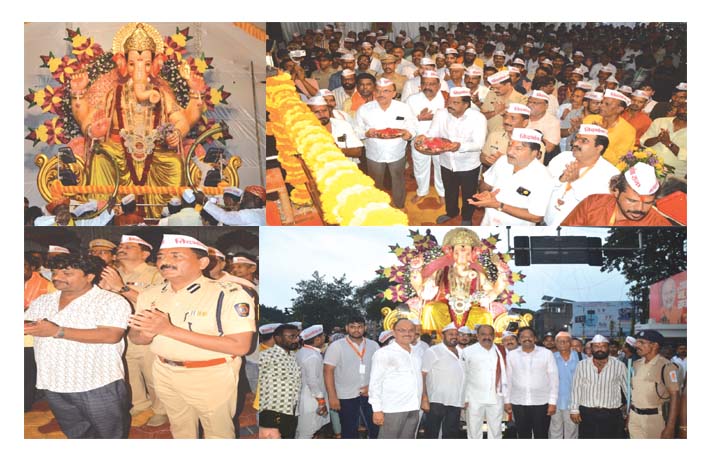 विसर्जन रैली शुरु होने से पहले भव्य पंडाल में हुई महाआरती