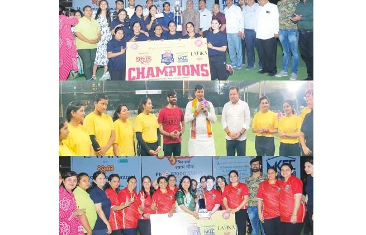 अमरावती/दि.13 -गुजराती महिला बॉक्स क्रिकेट सीजन-1 टूर्नामेंट का अंतिम मुकाबला होमकी ब्लास्टर व तनिष्क सुपर क्वीन के बीच खेला गया. इस टूर्नामेंट में हीमकी ब्लास्टर्स शुरुआत से ही मैच पर पकड बनाए हुए थे. उनकी टीम के सदस्यों ने अंत तक तनिष्क सुपर क्वीन की टीम को टार्गेट तक पहुंचने नहीं दिया. उन्होंने बल्लेबाजी व गेंदबाजी के साथ फील्ड में जोहर दिखाते हुए गुजराती समाज महिला क्रिकेट सीजन 1 का पहला खिताब अपने नाम कर ‘होम की ब्लास्टर्स’ की टीम विजयी रही, जबकि तनिष्क सुपर क्वीन की टीम को दूसरे स्थान पर संतोष व्यक्त करना पडा.