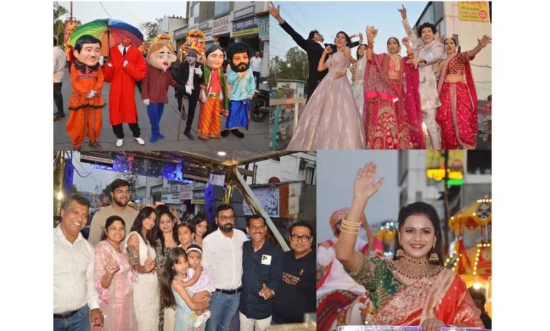 तभी थिरकते हुए कदमों संग गंगाइ, आई तुळजा भवानी जैसे धारावाहिक में अपने अनुभव की अनोखी छाप छोडनेपाली मराठी जगत की अदाकारा पल्लवी संजयराव की एन्ट्री हुई. उन्होंने दुल्हन के लिए सजाई गई बग्गी पर सवार होकर शहरवासियों का अभिवादन करते हुए उनके साथ डान्स का लुफ्त उठाया. वे जब भी लोगों को देखती तो बग्गी में उठ खडी होती और नाचते हुए अंबानगरी वासियों का अभिनंदन करती नजर आ रही थी. एक तरह से मानो केसरिया रंग की साडी, हरे रंग का ब्लाउज और उस पर लाल रंग का चमकीला दुपट्टा ओढकर साज श्रृंगार के साथ बग्घी में सवार कोई दुल्हन की बारात निकल रही हो, जो पूरे शहर के लिए ही नहीं उस दुल्हन के लिए भी यादगार बन जाए, ऐसा नजारा सर्वत्र देखने को मिल रहा था.