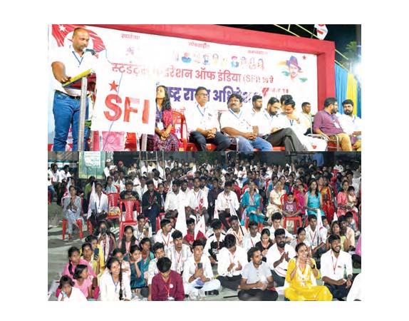नांदगांव खंडेश्वर/दि.3-स्टूडेंट्स फेडरेशन ऑफ इंडिया (एसएफआई) का 19वां महाराष्ट्र राज्य अधिवेशन नांदगांव खंडेश्वर में उत्साह के साथ शुरू हुआ. सुबह 11 बजे एसएफआई के राष्ट्रीय महासचिव मयूख बिश्वास ने इसका उद्घाटन किया. इस अवसर पर स्वागत भाषण भारतीय कॉलेज के प्रा. डॉ. प्रशांत विघे ने राज्य भर से आए प्रतिनिधियों का स्वागत किया. शाम 6 बजे नांदगांव खंडेश्वर में राज्य अधिवेशन की आमसभा बडे उत्साह के साथ हुई. इस सभा में सैकडों छात्र, युवा और नागरिक मौजूद थे. बैठक की अध्यक्षता एसएफआई के राज्य अध्यक्ष सोमनाथ निर्मल ने की. बैठक को भारतीय कम्युनिस्ट पार्टी (मार्क्सवादी) के विधायक कॉमरेड विनोद निकोले, अखिल भारतीय किसान सभा के राज्य महासचिव डॉ. अजीत नवले और एसएफआई के राष्ट्रीय महासचिव मयूख विश्वास ने संबोधित करते हुए मौजूदा शिक्षा व्यवस्था की खामियों, बढती बेरोजगारी पर प्रकाश डाला.