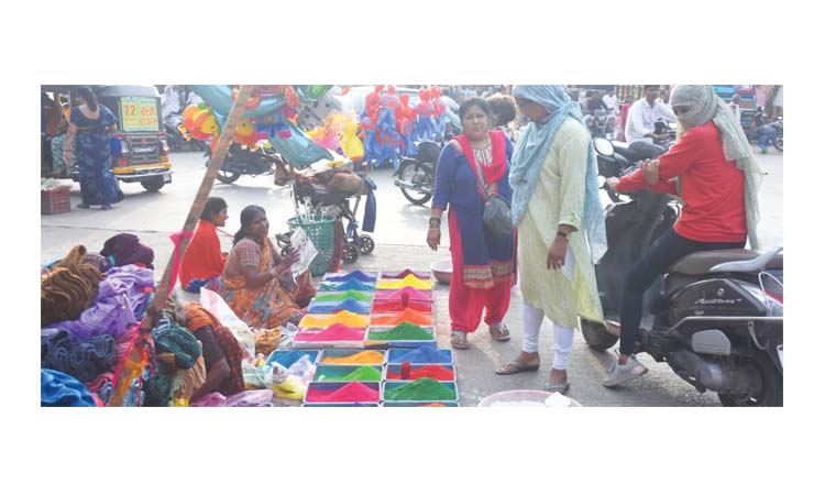 बाजार में आंखों को लुभा रही रंगबिरंगी रंगोली