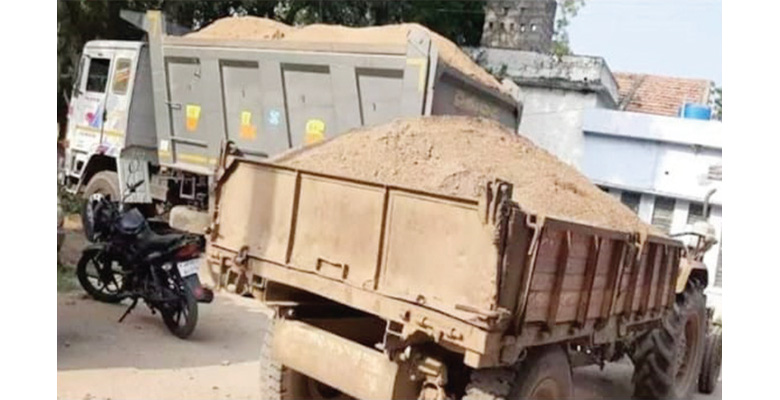 पथ्रोट पुलिस ने रेत से भरे तीन ट्रक पकडे