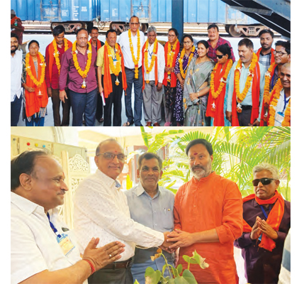 अमरावती/ दि. 12 – भगवान बालाजी के तिरूपति धाम की सुंदर सफल यात्रा कर रविवार को लौटे नेत्रबाधित श्रध्दालुओं का रविवार दोपहर अमरावती मॉडल स्टेशन पर गणमान्य सहित राजस्थानी महिला मंडल ने गुलाब के फूल देकर बैंड बाजा के निनाद में अगवानी की. उसी प्रकार सुरेश महाराज और आकाश पांडे ने स्वादिष्ट लस्सी की व्यवस्था की थी. जिससे यात्रा की काफी कुछ थकान कुछ ही देर में उडनछू हो गई. इस समय गोविंदा का जयकारा सभी ने गुंजायमान किया. उल्लेखनीय है कि चार दिवसीय यात्रा का आयोजन श्री राजस्थानी हितकारक मंडल और श्री माहेश्वरी सामूहिक सेवा समिति ने किया था. जो कई मायने में स्मरणीय रही. उल्लेखनीय है कि 55 नेत्रबाधित व्यक्तियों सहित 99 भक्तों के जत्थे के तिरूपति संस्थान के ट्रस्टी भानु प्रसाद रेड्डी और साथियों ने सुंदर वीआईपी दर्शन करवा दिए.