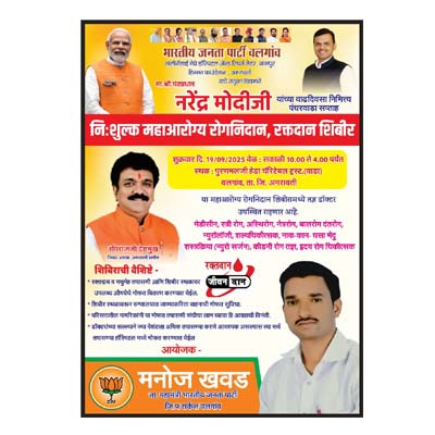वलगांव /दि.18 – देश के लोकप्रिय प्राधानमंत्री नरेंद्र मोदी के जन्मदिन पर अमरावती जिला ग्रामीण भाजपा अध्यक्ष रविराज देशमुख के मार्गदर्शन में कल 19 सितंबर को स्थानीय पुरणमल हेडा चैरिटेबल ट्रस्ट (वाडा) में भव्य नि:शुक्ल महा आरोग्य, रोग निदान व रक्तदान शिविर का आयेाजन भारतीय जनता पार्टी, शालीनी मेघे अस्पताल एड.रिसर्च सेंटर नागपुर व हिम्मत फाउंडेशन अमरावती के संयुक्त तत्वाधान में किया गया हैं.