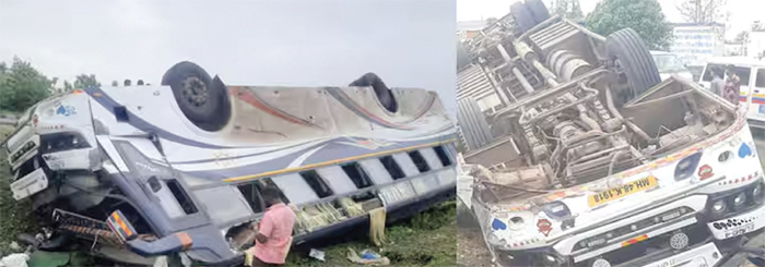 टेंभुर्णी के पास ट्रैवल बस गड्ढे में गिरी