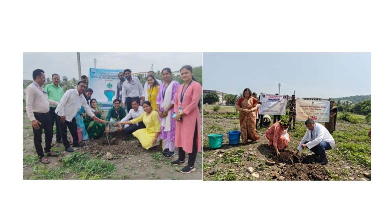 अमरावती/दि.6-विश्व पर्यावरण दिवस के उपलक्ष्य में प्रकृति की वादियों के बीच मार्डी रोड स्थित डॉ. राजेंद्र गोडे मेडिकल कॉलेज व हॉस्पिटल में जागतिक पर्यावरण दिन मानाया गया. पर्यावरण संरक्षण के प्रति जागरूकता फैलाने हेतु विशेष कार्यक्रमों का आयोजन किया गया. इस वर्ष की थीम जागतिक स्तर पर प्लास्टिक प्रदूषण निर्मूलन को ध्यान में रखते हुए कॉलेज परिसर में वृक्षारोपण किया गया और पर्यावरण पर केंद्रित विविध गतिविधियाँ संपन्न हुईं. प्लास्टिक निर्मूलन करने हेतु हर संभव प्रयास करने का संकल्प लिया गया. डॉ. राजेंद्र गोडे मेडिकल कॉलेज व हॉस्पिटल, महाराष्ट्र प्रदूषण नियंत्रण मंडल प्रादेशिक कार्यालय , एओआई-एचएनएस ( विदर्भ कान, नाक, गला संघटना ) तथा भारतीय शल्यचिकित्सक संघटना ने संयुक्त रूप से इस कार्यक्रम का आयोजन किया. कार्यक्रम की शुरुआत डॉ. राजेंद्र गोडे मेडिकल कॉलेज की प्राचार्या डॉ. सुधा जैन के उद्घाटन भाषण से हुई, जिसमें उन्होंने पर्यावरण संतुलन बनाए रखने में चिकित्सा क्षेत्र की जिम्मेदारी को रेखांकित किया।. विदर्भ कान, नाक, गला संघटना की अध्यक्ष डॉ. शर्मिष्ठा बेले ने डॉ. राजेंद्र गोडे मेडिकल कॉलेज व हॉस्पिटल के समीप हरी भरी पहाडियों को देख प्रसन्नता दर्शायी तथा कॉलेज प्रशाशन द्वारा निसर्ग संतुलन को बरकरार रखने के लिये गौरव उदगार कहे. भारतीय शल्य चिकित्सक संघटना के कार्यकारिणी सदस्य डॉ. राजेंद्र गानेरिवाल ने निजी जीवन में प्लास्टिक के बढते उपयोग पर चिंता जतायी.