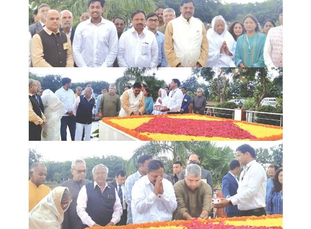 अमरावती– भूूतपूर्व राज्यपाल स्व. रासु उर्फ दादासाहब गवई के जयंती उपलक्ष्य अभिवादन करते उनके पुत्र और देश के प्रधान न्यायाधीश जस्टीस भूषण गवई, धर्मपत्नी कमलाताई गवई, पुत्र डॉ. राजेंद्र गवई, पुत्री कीर्ति अर्जुन, सांसद बलवंत वानखडे, वसंतराव गवई और अन्य मान्यवर.