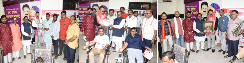 इसके साथ ही गत रोज शहर के वरिष्ठ विधिज्ञ एड. प्रशांत देशपांडे के जन्मदिवस निमित्त आयोजित रक्तदान शिविर में सांसद रक्तदान अभियान के प्रणेता भाजपा जिलाध्यक्ष व राज्यसभा सांसद डॉ. अनिल बोंडे बतौर प्रमुख अतिथि उपस्थित थे. साथ ही इस अवसर पर बार एसोसिएशन के अध्यक्ष डॉ. सुनील देशमुख, पूर्व महापौर विलास इंगोले, भाजपा के शहर उपाध्यक्ष चेतन पवार, एड. रोहित जैन, एड. मोहिते, सतीश करेसिया, सुरेश रतावा, संगीता शिंदे, रविकांत कोल्हे, संजय तिरथकर, प्रकाश चितलांगे, एड. दिलीप तिवारी, एड. प्रथमेश तिवारी, शहर पुलिस आयुक्त नवीनचंद्र रेड्डी, पुलिस उपायुक्त गणेश शिंदे, सिटी कोतवाली के थानेदार मनोहर कोटनाके, स्पेशल स्क्वॉड पीआई आसाराम चोरमले, विहिंप के संघटन मंत्री बंटी पारवानी, जिलाध्यक्ष अनिल साहू, भाजपा के प्रदेश पदाधिकारी जयंत डेहनकर, प्रा. दिनेश सूर्यवंशी, शिवराय कुलकर्णी. सचिन रासने, करण धोटे, प्रवीण वैश्य व मोहन जाजोदिया सहित सांसद प्रतिनिधि के तौर पर वैदेही उपासने, शुभम मांडले, अनिल पाटिल आदि उपस्थित थे. इस रक्तदान शिविर में करीब 50 यूनिट रक्त संकलित किया गया.