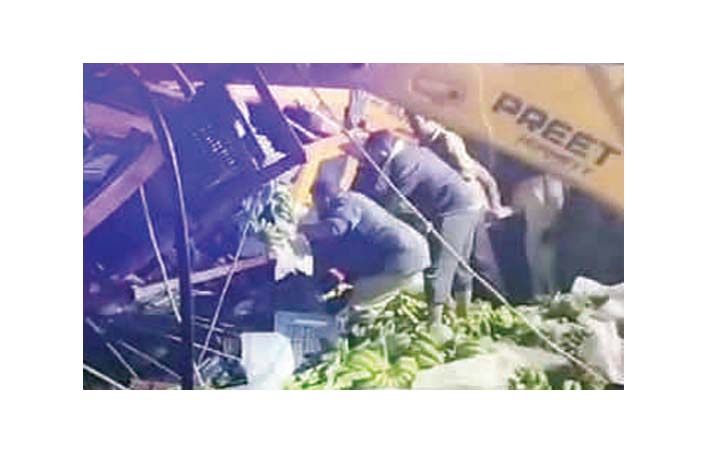 जानकारी के मुताबिक केले से भरा आयशर ट्रक क्रमांक एमएच 48/ एवाय 4815 जलगांव जामोद- अकोट मार्ग से अंजनगांव की ओर 8 मजदूरों को लेकर जा रहा था. बुलढाणा जिले के टुनकी गांव के पास चालक का गाडी पर संतुलन बिगड गया और ट्रक पलटी हो गया. ट्रक में सवार सभी मजदूर अमरावती जिले के अंजनगांव के बताए जा रहे हैं. जानकारी मिलते ही सोनाला पुलिस का दल घटनास्थल पहुंच गया और जेसीबी की सहायता से सभी मजदूरों को बाहर निकाला. जख्मी पांच मजदूरों को उपचार के लिए सरकारी अस्पताल में भर्ती किया. इस हादसे में ट्रक के नीचे दबने से दो मजदूरों की मृत्यु हो गई. इस दुर्घटना में ट्रक का भी भारी नुकसान हो गया. पुलिस ने आरोपी ट्रक चालक के खिलाफ मामला दर्ज कर जांच शुरू की हैं.