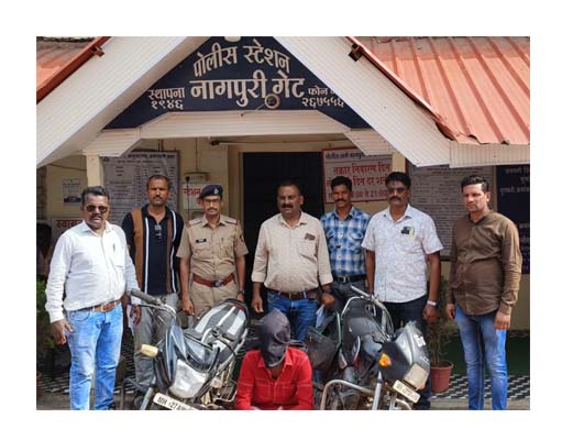 जानकारी के मुताबिक नागपुरी गेट थाना क्षेत्र से 26 और 29 जुलाई को दो मोटर साईकिल चोरी हो गई थी. वाहनों के इस चोरी के प्रकरण में पुलिस आयुक्त अरविंद चावरिया द्बारा दिए गए आदेश के मुताबिक थानेदार हनमंत उरूलागोंडावार, निरीक्षक जनार्दन सालुंखे, उपनिरीक्षक गजानन विधाते, हेड कांस्टेबल शिवनाथ आंधले, मलीक अहमद, दिनेश नांदे, इमरान, संदीप माकोडे, राहुल रोडे का दल जांच में जुटा हुआ था तब सीसीटीवी फुटे और मिली जानकारी के आधार पर लालखडी निवासी संदिग्ध अब्दुल साहिल अब्दुल सलीम को नागपुर से कब्जे में लेकर पूछताछ की तब उसने काले रंग की स्प्लेडर एमएच 27/ डीएफ 0193 और एमएच 27 / एडब्ल्यू 3056 क्रमांक की पैशन प्रो दुपहिया चोरी की कबूली दी. पुलिस ने दोनों दुपहिया जब्त कर ली है. जिसकी किमत 60 हजार रुपए बतायी जाती है. मामले की जांच पुलिस आगे कर रही है.