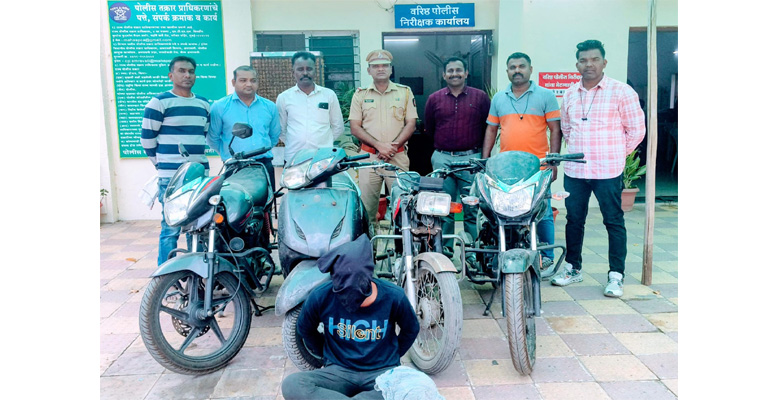 जानकारी के मुताबिक बेलपुरा निवासी सागर मनोहरराव गोडसेलवार (34) युवक ने 1 मार्च की शाम 6 बजे के दौरान एमएच 27 सीएम 6921 क्रमांक की सीबी शाहीन मोटर साइकिल राजेंद्र कालोनी के नमस्कार पान सेंटर के सामने रखी रखी और पानठेले पर गया. 10 मिनट बाद लौटा, तब उसे अपनी दुपहिया दिखाई नहीं दी. काफी तलाश करने पर भी कही पता न चलने पर मामले की शिकायत फ्रेजरपुरा थाने में दर्ज करवाई. इस मामले में आरोपी की तलाश जारी की, तब मिली जानकारी के आधार पर धारणी तहसील के कारदा ग्राम निवासी श्याम जांबेकर नामक युवक को कब्जे में लेकर उससे पूछताछ की, तब उसने वाहन चोरी की कबूली दी. साथ ही राजापेठ थाना क्षेत्र से चोरी का एक वाहन और अन्य स्थानों से दो ऐसे कुल 4 वाहन चुराने की कबूली दी. पुलिस ने यह चारों वाहन जब्त कर लिये है. जिसकी कीमत 2 लाख 15 हजार रुपए बतायी जाती है. यह कार्रवाई सहायक आयुक्त कैलाश पुंडकर के मार्गदर्शन में थानेदार नीलेश करे, निरीक्षक नीलेश गावंडे, सहायक निरीक्षक रवींद्र सहारे, उपनिरीक्षक, राहुल महाजन, जमादार सुभाष पाटिल, जवान शशिकांत गवई, सचिन बोरकर, सागर चव्हाण, जावेद पटेल के दल ने की.