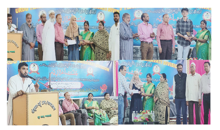 अध्यक्षीय संबोधन में पूर्व शिक्षणाधिकारी डॉ. अब्दुल राजिक ने युटीए के कार्यो की भूरि-भूरि प्रशंसा की. उन्होंने बताया कि, वह खुद इस संगठन के सचिव रहे है. संगठन लगातार बढ भी रहा है. उसके समाज हित के कार्य भी बढ रहे है. नीट परीक्षा में 666 अंक प्राप्त कर पूरे भारत वर्ष में 21 वीं तथा महाराष्ट्र में तीसरी रैक प्राप्त छात्र उम्मेद खान, बडनेरा की 522 अंक प्राप्त छात्रा अलिजा आफताब खान तथा सैफिया स्कूल की छात्रा फाहेका तसनीम नीशाद अहमद ने अपने विचार व्यक्त करते हुए युटीए का आभार माना तथा विद्यार्थियो को खुब परिश्रम कर शिक्षा क्षेत्र में तरक्की हेतु कामना की. कार्यक्रम में लगभग 150 विद्यार्थी अपने अभिभावकों के साथ उपस्थित रहे. पूरे संभाग से आए विद्यार्थियों के लिए नाश्ता और भोजने की व्यवस्था की गई थी, कार्यक्रम का सफल संचालन राईस अहमद ने तथा आभार प्रदर्शन प्रा. मोहम्मद हारिस ने किया विद्यार्थियों का हौसला अफजाई स्वरूप उन्हें स्मृति चिन्ह, ट्रॉफी और प्रमाणपत्र प्रदान किए गए, कार्यक्रम को सफल बनाने युटीए के विभागीय उपाध्यक्ष असरार अहमद, मोहम्मद जावेद, सचिव सादिक नय्यर, काजी, सलाहुद्दीन, कोषाध्यक्ष मोहम्मद नसीम, मोहम्मद गौस, मोहम्मद, हारीस, मोहम्मद अतिकुर्रहमान, शहर अध्यक्ष मोहम्मद नाजिमोद्दीन, इलियास परवेज, एजाज अख्तर, मोहम्मद फेैजान, अबरार , अफराज अहमद, रिजवान खान, समीना सुल्ताना मैंडम, अदनान अहमद, मोहम्मद आरिफ, एजाज उर्फ अज्जू हफीज खान, अंसार अहम्मद, आसिफ खान, हारून शाह, आदि पदाधिकारियों ने परिश्रम किए.