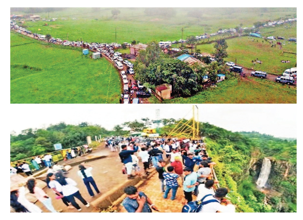 बता दें कि, प्रति वर्ष ही बारिश के मौसम दौरान चिखलदरा में लाखों पर्यटक बारिश में भिगने सहित यहां के निसर्गरम्य वातावरण का आनंद लेने हेतु पहुंचते है. इस समय पर्वतीय क्षेत्र चिखलदरा में चहुंओर सफेद घना कोहरा छाया हुआ है और उंचे-उंचे पहाडों व गहरी खाईयों में सर्वत्र हरियाली फैली हुई है. साथ ही भीमकुंड सहित क्षेत्र के सभी पहाडी झरने भी जीवित होकर पूरे उफान के साथ बह रहे है और इसके साथ ही चिखलदरा में अब कई साहसीक खेल व उपक्रम भी उपलब्ध कराए गए है. इन सभी बातों को देखते हुए प्रकृतिप्रेमी पर्यटक चिखलदरा की ओर खींचे चले आते है. बारिश का मौसम शुरु होते ही विगत एक माह के दौरान दो लाख से अधिक पर्यटकों ने चिखलदरा को भेंट दी है. वहीं विगत सप्ताह हुई झमाझम बारिश के बाद बीते शुक्रवार की शाम से ही पर्यटकों का चिखलदरा पहुंचना शुरु हो गया था. जिसके चलते शनिवार की सुबह होते-होते चिखलदरा में हर ओर पर्यटकों एवं उनके वाहनों की अच्छी-खासी भीडभाड दिखाई देने लगी थी. जो धीरे-धीरे लगातार बढती चली गई और रविवार को आलम यह रहा कि, चिखलदरा में 10 किमी की दूरी तक वाहन ही वाहन खडे दिखाई दिए.