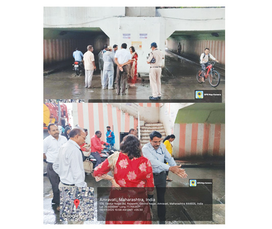 अमरावती/दि.8 – शहर और जिले में जारी इस सीजन की पहली बारिश की झडी से अनेक निचले भागो में जलजमाव के समाचार मिल रहे हैं. इसी कडी में राजापेठ अंडर ब्रीज में भी जलजमाव का समाचार मिलते ही महापालिका उपायुक्त मेघना वासनकर वहां पहुंची. उन्होंने बारीकी से अवलोकन किया, उसी प्रकार अधिकारियों को तत्काल उपाययोजना करने कहा.
