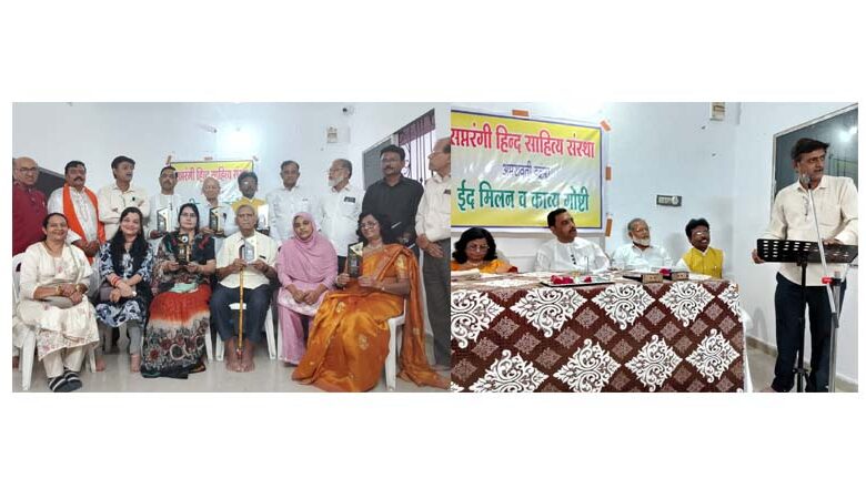 अमरावती /दि.17– स्थानीय महक मल्टीपर्पज फाउंडेशन द्वारा हाल ही में सप्तरंगी हिंदी साहित्य संस्था के संयुक्त तत्वाधान के तहत काव्यगोष्ठी व ईद मिलन कार्यक्रम का आयोजन किया गया था. जिसमें अपनी साहित्य विधा से अमरावती का नाम रोशन करनेवाले कवियों व साहित्यकारों का स्मृतिचिन्ह, शॉल व पुष्पगुच्छ प्रदान कर सत्कार किया गया. महक मल्टीपर्पज फाउंडेशन की अध्यक्षा व सप्तरंगी हिंदी साहित्य संस्था की सदस्या नरगिस अली के वलगांव रोड पर पैराडाईज कॉलोनी स्थित निवासस्थान पर आयोजित इस काव्यगोष्ठी में सभी रचनाकारों ने अपनी एक से बढकर एक रचनाएं सुनाई और आयोजन के अंत में सभी ने शीरखुरमा का आनंद लिया.
