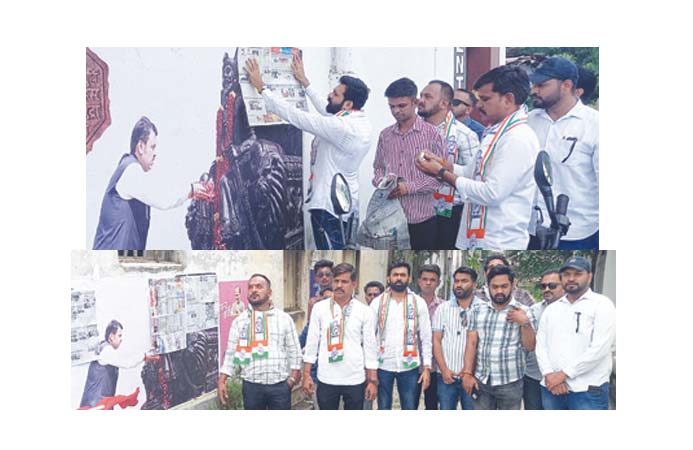 अमरावती/ दि. 16 – सर्विस गली और नालियों के पास लगे छत्रपति शिवाजी महाराज के पोस्टर्स पर आपत्ति जताते हुए एवं इसे शिवाजी महाराज का सरासर अपमान बताते हुए युवक कांग्रेस के कार्यकर्ताओं ने अखबारों की रद्दी से उसे ढका.